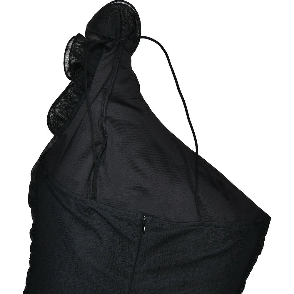 Make an unforgettable impression in this chic one-shoulder midi dress, featuring cascading 3D ruffle detailing that runs from the neckline to the hem. Designed with flattering ruching throughout, it enhances your curves while offering a comfortable, figure-skimming fit. The subtle front slit adds a touch of allure, making it perfect for weddings, cocktail parties, and elegant evening events.