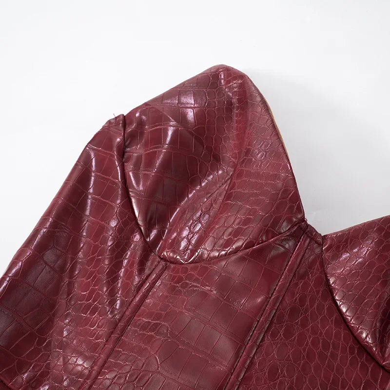 Exude confidence and sophistication in this sleek faux leather corset mini dress. Designed with a sculpted, figure-hugging silhouette, it features a contoured bustier neckline that enhances your shape while offering modern structure and support. The subtle textured finish adds depth and edge, making it the perfect statement piece for evening events and high-style occasions.